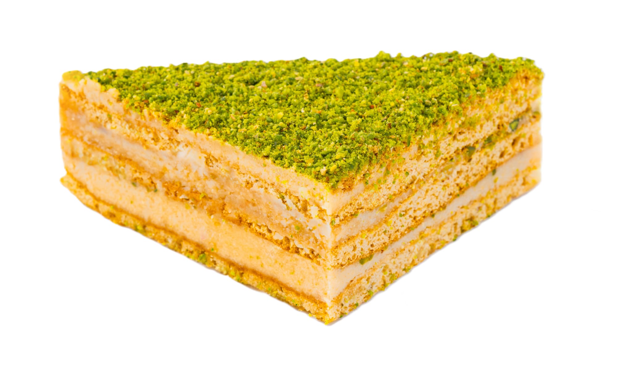 Doğal balla hazırlanan ve çıtır fıstıklarla tamamlanan yumuşak ve lezzetli Marlenka kek.